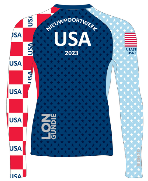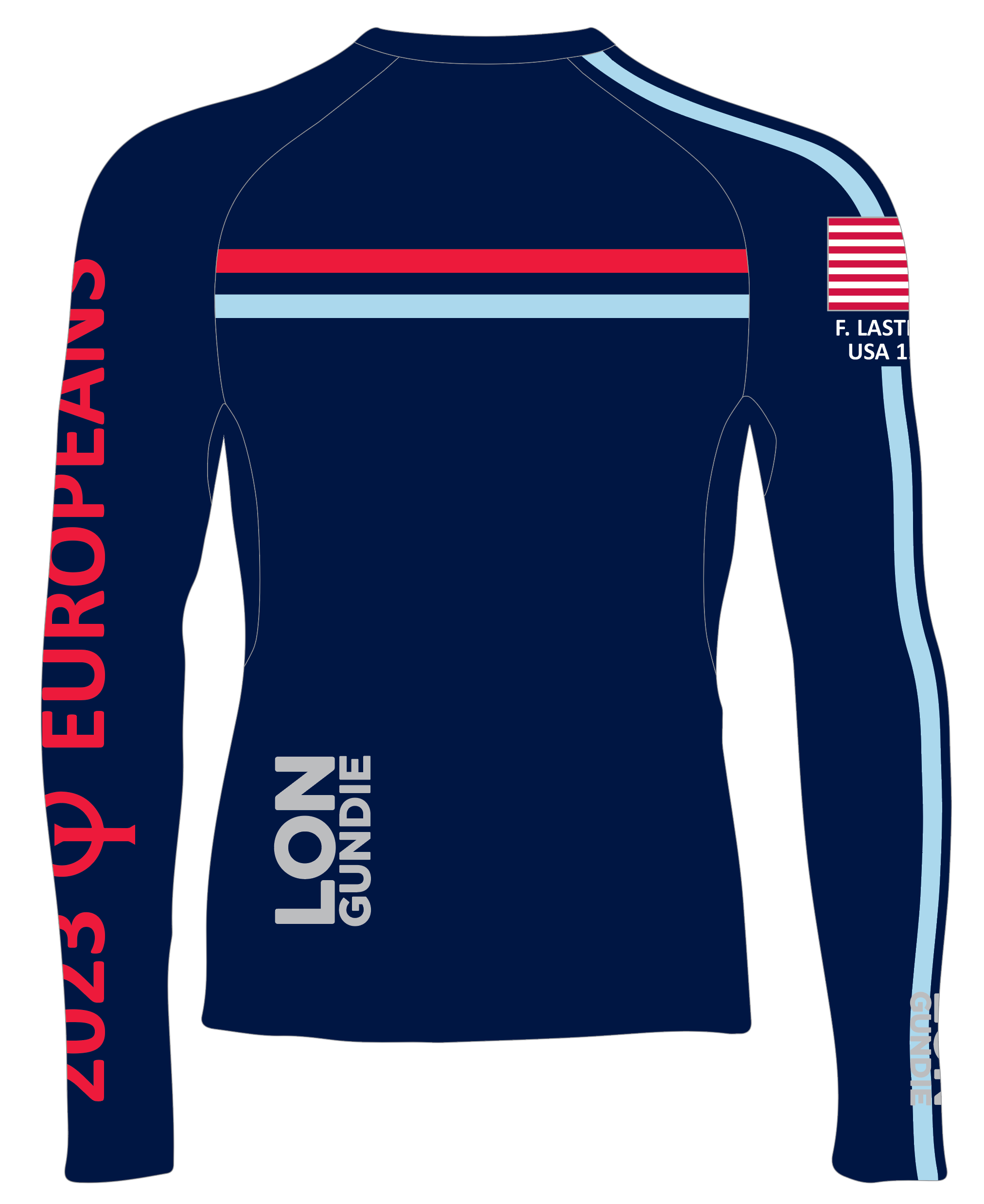CUSTOM JR RASH GUARD TOP LONG SLEEVE BLUE JR UFL PERSONALIZED